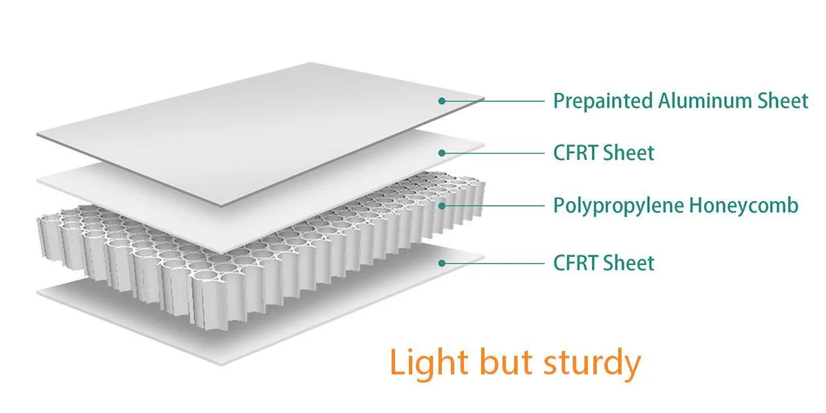 ●A méhsejt megoldás: Extrém könnyű súlyozás. Kompozit paneljeink ugyanolyan vagy nagyobb szilárdságot kínálnak, mint az acél miközben 30-50%-kal csökkenti a testsúlyt.