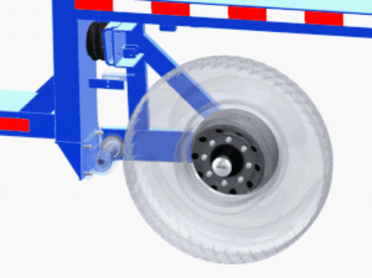 Felfújható gumitömlőkkel helyettesíti az acél/gumi rugókat; légkompresszorral és magasságszabályozó szeleppel párosítva a nyomás dinamikus beállításához, valamint a keret és a tengely támogatásához.Főbb előnyök: