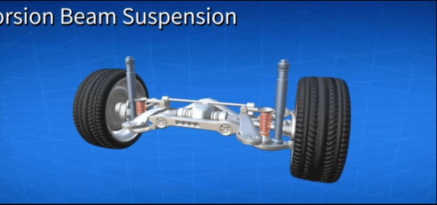 Tartalmaz egy fém cső házat gumi zsinórokkal; a kerekek lengőkarokon keresztül csatlakoznak a gumiszerelvényhez. A független kerékmozgást a gumi torziós deformációja teszi lehetővé, minden kerék függetlenül működik.